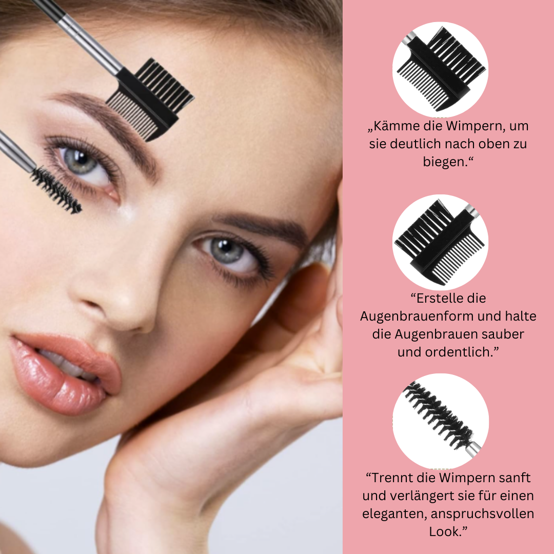 Das doppelseitige Design bietet maximale Vielseitigkeit: Eine Seite formt und trennt die Augenbrauen für ein natürliches, volles Finish, während die andere überschüssige Mascara entfernt und die Wimpern für extra Länge & Volumen perfekt separiert.